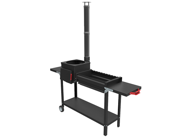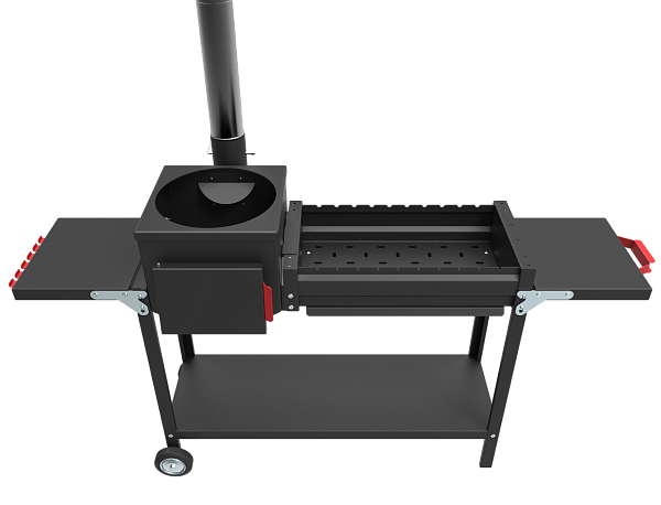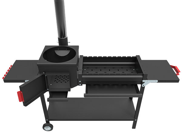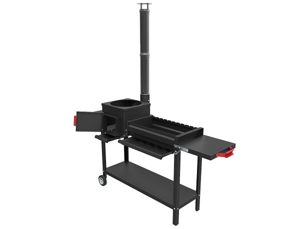 - Печь мангал оснащён обвязкой "Комфорт" - с колесами и складывающимися боковыми столиками