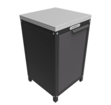 Уличные разделочные столы-тумбы с дверками и рабочей поверхностью из нержавеющей стали.